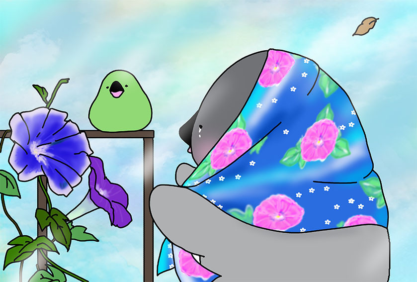 このころ、朝顔さんが まだちょびっと咲いていたのどすよ〜!